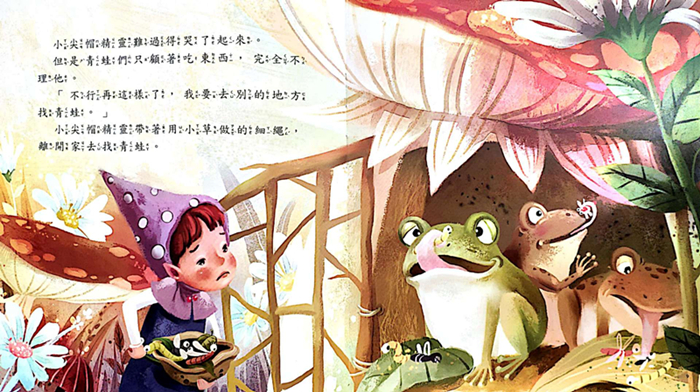 看到小尖帽精靈為了要在青蛙跳遠比賽中,
