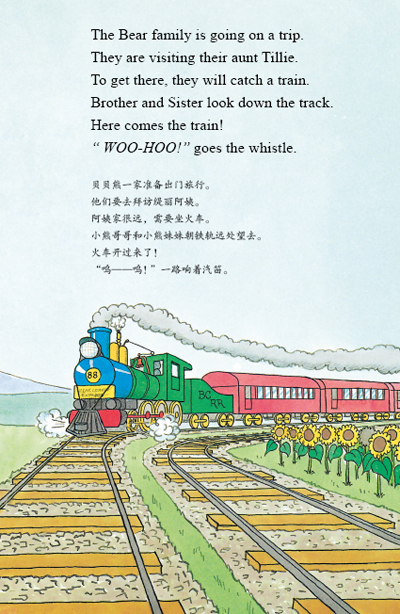 在贝贝熊图画书之“双语阅读”系列中,贝贝熊一家去海洋馆、去养蜂场、去农场、去牧场、去海边,养小猫、养小狗、养金花鼠,乘火车、乘飞机、骑小马……不论干什么都充满乐趣。