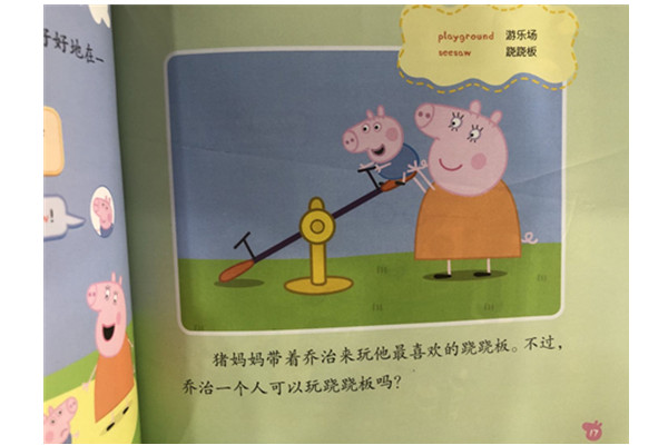 乔治和理查德在游乐场,妈妈鼓励他们一起玩。可是他们都太小了,还不会分享自己的玩具,也不知道怎样好好一起玩。猪妈妈想到了一个好主意——玩跷跷板。不过,乔治一个人是没法玩跷跷板的,当理查德坐到另一端的时候,两个小伙伴终于开心地玩起来了!