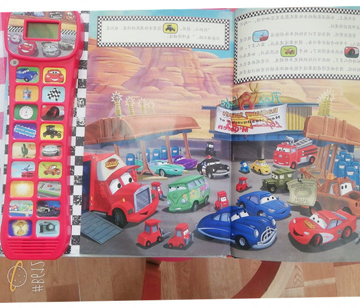 本故事讲述了麦昆重新回到水箱温泉镇后,要把小镇改造成一个闻名全世界的赛车场,因此发生了很多故事。故事内文中有很多图标,宝宝只要按动书右的图标,就会在上方的屏面上看到各种赛车动作和声音,让故事内容更加轻松有趣好玩。