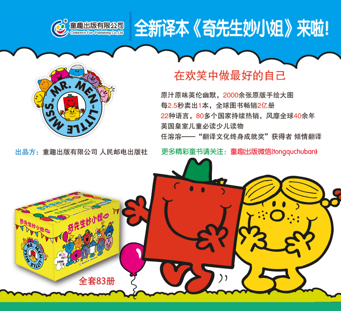 “奇先生妙小姐”畅销40多年,风靡80余国,被译成22种语言,全球销量过2亿册。英国曾列出“二十一世纪前十年最畅销作品”,第一名是“哈利波特”系列,第二名就是这套“奇先生妙小姐”。