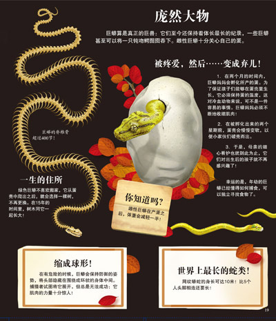 从来都不喜欢冷血动物,为这本书里孵卵的蟾蜍爸爸、看护孩子的鳄鱼妈妈、筑巢的眼镜蛇妈妈感动不已,原来温情如此,生命如此不易,爱护每一种动物,尊重每一个生命,使我们应该做的。 ——当当网网友