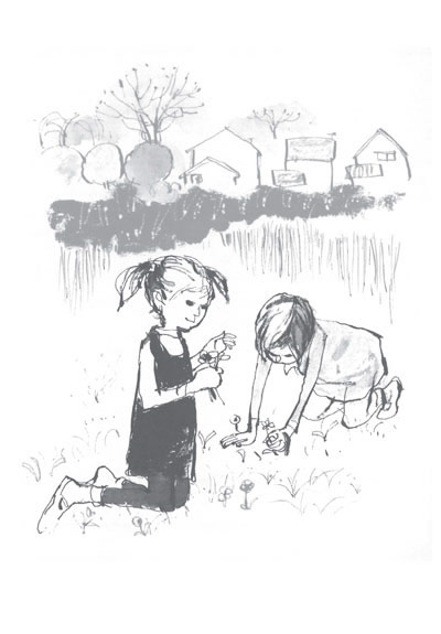 秋代一边把一种天蓝色的、名叫“阿拉伯婆婆纳”的花丢进玩过家家游戏的碗里,一边说: