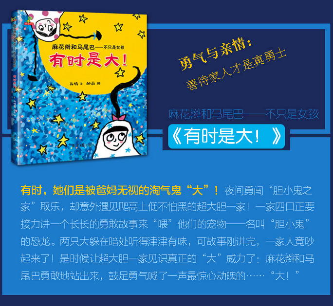 有时,她们是被爸妈无视的淘气鬼“大”,潜伏进恐龙背上的胆小鬼之家,听一家四口接力讲勇敢故事;