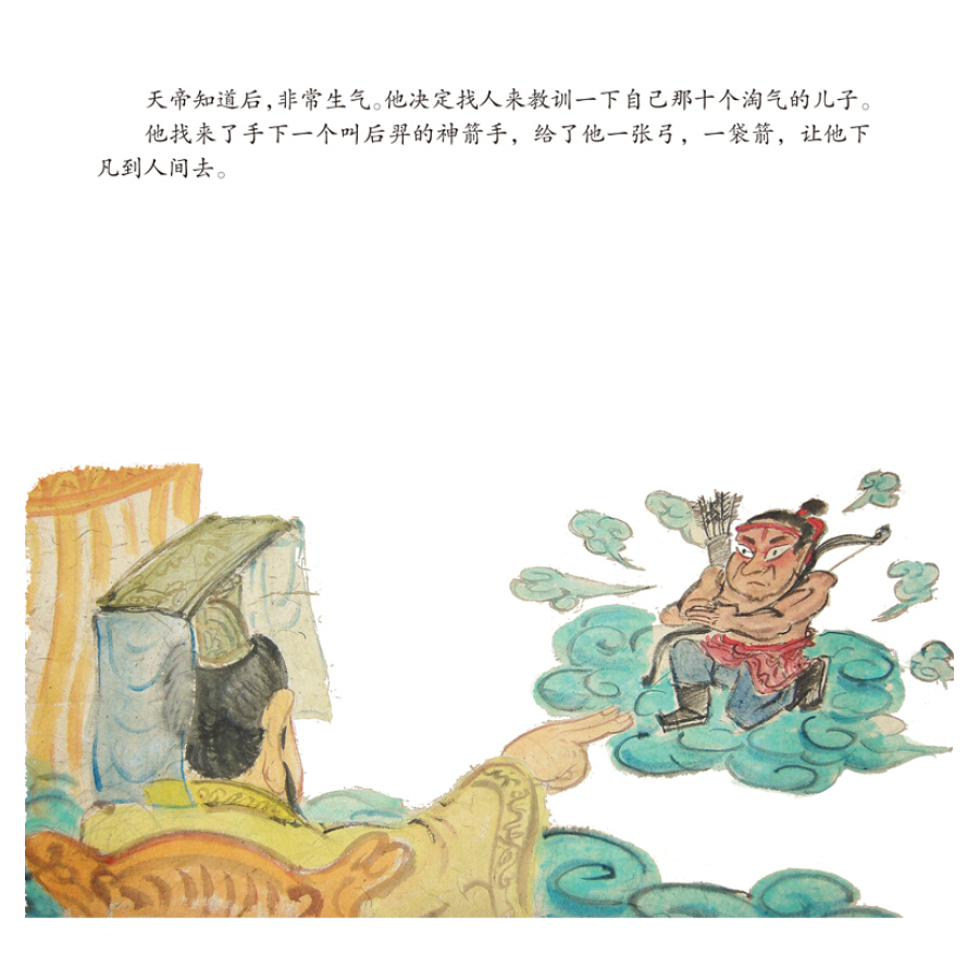 本书主要讲述了《后羿射日》的故事,故事情节生动有趣,绘图精美,图文结合很好地表现了故事内容。