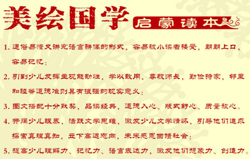 中国风的彩色插图,儿童喜欢看。一幅幅形象生动、色彩艳丽的图画能一瞬间抓住孩子的眼球,打动他们的心!在编排时,为了满足儿童的学习需要和方便家长讲解,我们增加了汉语拼音、译文、词语注释和简明有趣的小故事,来激发儿童的阅读兴趣,帮助孩子理解和记忆