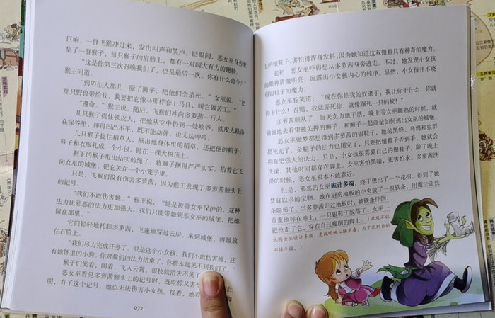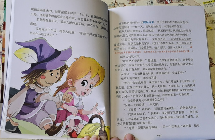 本书它的背景是美国的——小女孩多萝茜住在堪萨斯草原,这是美国中部一片被太阳炙烤成“东南西北全是灰蒙蒙的,再也看不到别的东西”的大草原。人物是美国的——我们先来看主人公多萝茜。这是一个典型的美国女孩。她住在乡下的小房子里,是个穷人家的孩子,但她阳光、向上、善良,对同伴总是热心相助,不怕危险和困难。用艾莉森·卢里的话来说,“她绝对是一个新女性……她勇敢、积极、独立、敏感,敢于挑战权威”。书里有一段描写,形象鲜明地反映出了她的这种性格,当她第一次见到奥兹——椅子中间是一颗硕大的脑袋时,请求奥兹帮她回家。奥兹问她:“我为什么要帮你呢?”她回答得毫不畏怯又充满了十足的孩子气:“因为你强大我弱小;因为你是一个伟大的巫师,我只是一个小女孩。”再来看看配角:稻草人、铁皮伐木人和胆小鬼狮子是被称为民间童话中“神奇的助手”一类的人物,他们没有半点魔力。只要你跟着小姑娘多萝茜、没头脑的稻草人、没心的铁皮伐木人、胆小的狮子走一段神奇的探索之路——他们寻找回家之路、大脑、心脏和胆量的过程,你就会顺利地抵达梦想之地。