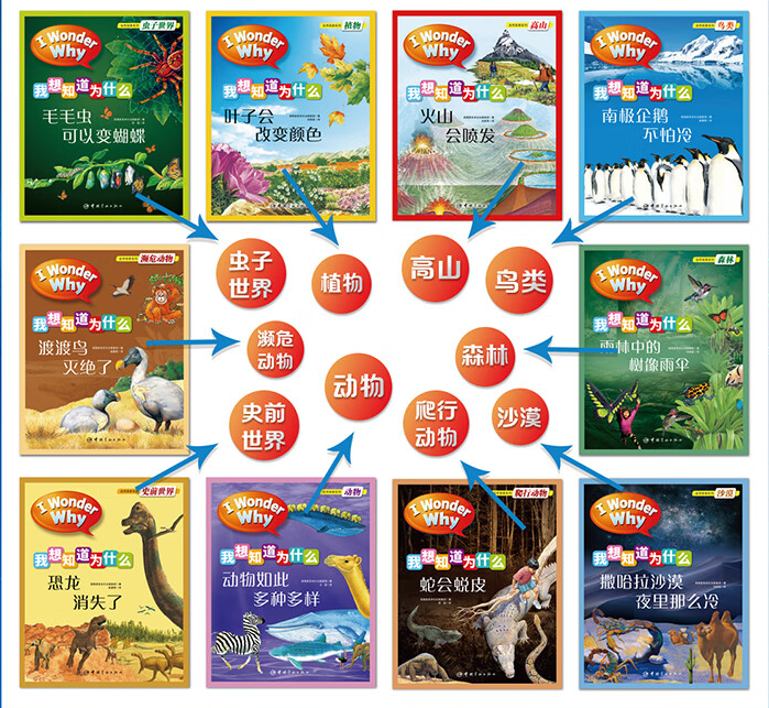 英国版“十万个为什么”,麦克米伦出版集团出品。《我想知道为什么:自然探索》系列涉及动物、植物、濒危动物、恐龙、森林、高山、鸟类、沙漠、虫子世界、史前世界十大主题,引导孩子触碰自然、探索未知、理解生命,敏锐捕捉孩子好奇心,提升观察力和思考力。