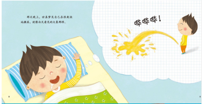 世真不听妈妈的话,睡觉前拿着饮料就咕咚咕咚地喝个不停。第二天早上,世真的床上画着一副大大的尿尿地图。世真不听话尿床了,妈妈很生气,世真也因为尿床而难受。“叮咚!叮咚”!叮咚医生来了!他告诉小朋友们遗尿症的原因和治疗方法,世真的妈妈还生世真的气吗?世真后来还尿床不尿床?