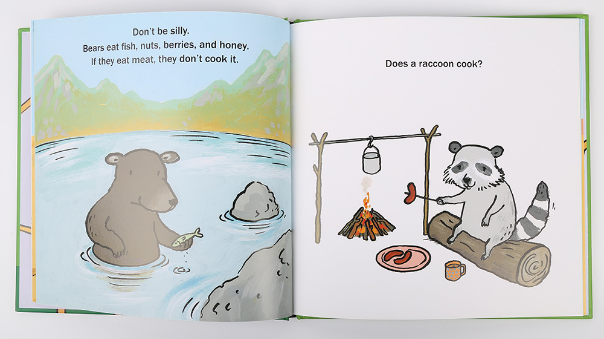 这本书比较了松鼠、熊、浣熊、花栗鼠等动物的进食行为,和人类种植、准备食物的方式。