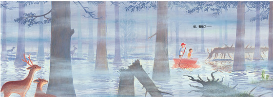 黯蓝的雾气中,剪影般显现出一丘河岸、两名行人,两人一舟,荡桨入流。恰如美国作家梭罗和其兄长在家乡附近河上旅行时所言,河流“总是引诱人们背井离乡去开拓、冒险”,引导旅行者穿越富风情的景色。两位驾船者也将带领我们深入神秘的草泽、水上森林和浅礁暗滩,在悬念丛生、惊喜交替的戏剧化航行中,发现奇趣的风景,获得人生的哲思。