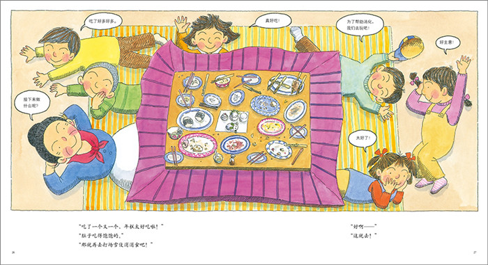 彩虹凉粉 、黑漆漆便当 、冰冻棉花糖 、猜不出什么馅的惊喜年糕 ……真想尝尝味道怎么样!还有夏日冰爽派对 、什锦烧大比拼 、什么都烤大会, 让人眼前一亮, 好想参加! 巴巴奶奶点子多多又不怕麻烦, 她的厨房里没有那么多不可能 、不可以, 想到什么就来试一试吧,保你玩得开心, 活力满满 。 03啪嗒啪嗒打年糕 打完雪仗,肚子饿得咕咕叫,孩子们嚷嚷着让巴巴奶奶做年糕。没有木杵和臼也没关系,巴巴奶奶的年糕只需要电饭锅、大碗和研磨棒。啪嗒啪嗒打年糕,撒上不同的配料,加入喜欢的馅料,做成新年年糕、兔子年糕、雪人年糕,还有猜不到是什么馅儿的惊喜年糕……吃饱了再去打雪仗吧!