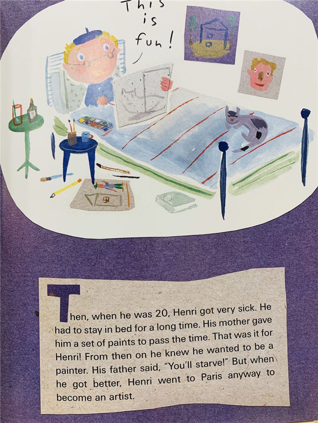 基西亚和亨利·马蒂斯同一天生日——除夕!这就是为什么她选择他为她的艺术报告和学习所有关于他的绘画,书籍和剪纸。全彩插图。德加以他的芭蕾舞画而闻名,但年轻的克里斯汀学会了莫尔
