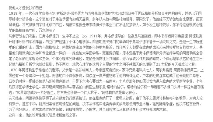 本书从个体心理学观点出发,阐明人生道路及意义,提出:理解一个人,就要从他的过去入手,而一个人的生活风格,则是与他对于过去经验的认识和理解相一致的。每个人都有不同程度的自卑感,自卑并不可怕,关键在于怎样认识自己的自卑,克服困难,超越自我。全书分别阐述了十二个主题:生活的意义、心智与身体、自卑感与优越感、早期记忆、梦、家庭的影响、学校的影响、青春期、犯罪及其预防、职业、个体与社会以及爱情与婚姻。共约25万字。