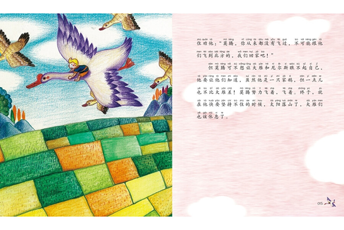 《骑鹅旅行记》是瑞典著名儿童文学作家塞尔玛·拉格洛芙的童话作品,讲述调皮顽劣的小男孩儿尼尔斯因为捉弄了小精灵,被小精灵施魔法变小了,他意外地骑着白鹅莫腾跟一群大雁一起飞往北方,在途中发生了许多惊险的故事。原著篇幅较长,为适应低龄儿童的阅读节奏,本稿为青年作者赵晨卉改编的缩写版。
