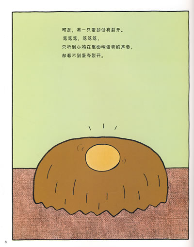 早就应该从蛋壳里蹦出来的小鸡,因为力气有点小、自尊心有点强,一直背着蛋壳跑来跑去。弟弟妹妹们都长得比他高了,他还是个鸡蛋,而且,觉得做个蛋宝宝也挺不错的。一次阴差阳错,这个蛋壳里的哥哥还成了保护弟弟们的大英雄…… 早就应该从蛋壳里蹦出来的小鸡,因为力气有点小、自尊心有点强,一直背着蛋壳跑来跑去。弟弟妹妹们都长得比他高了,他还是个鸡蛋,而且,觉得做个蛋宝宝也挺不错的。一次阴差阳错,这个蛋壳里的哥哥还成了保护弟弟们的大英雄……
