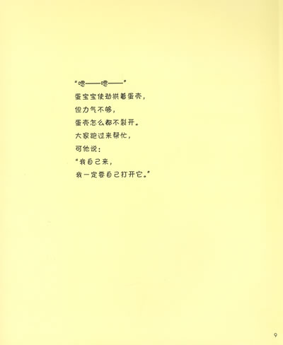 这只可爱的小鸡就像我们的孩子一样,有各种各样的缺点和不足,但都是成长过程中必须经历的,父母无法替代他们。作者细腻的笔触太经典了!我家宝宝特别喜欢,有一阵天天都要讲鸡蛋哥哥,都能背下来了,还要讲。推荐买