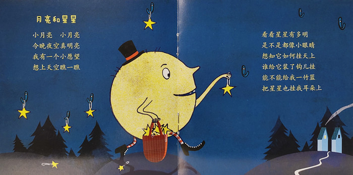 跟我一起看月亮小兔子啊 小猴子小木马啊 小鳄鱼你怎能待在墙上呢你怎能待在被窝啊快起来吧 小伙伴跟我一起看月亮