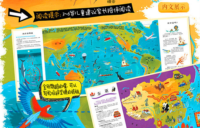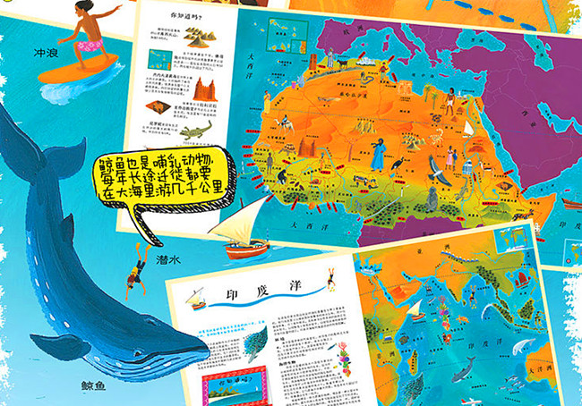 《世界地图》(百科知识版)依据不同的地理区域划分世界,考察当地环境如何塑造全球各地的社会生活和文化。它以非常形象生动的插图和简洁丰富的细节为孩子们讲述了关于地球的故事,包括它的过去、现在和未来。它告诉孩子我们所生活的地球在宇宙中的是如何形成的;人们如何将三维的地球形象展现在二维的地图上。 《世界地图:跟爸爸一起去旅行(百科知识版)》是一本21世纪的儿童地图集,在展示地球不同区域精彩内容的同时,还告诉我们它们是如何息息相关的。 《世界地图:跟爸爸一起去旅行(百科知识版)》包括:可展开的地图?“翻来翻去”知识问答小贴士?世界折页地图 一、专业团队 北斗儿童地理出品——国内专业的儿童地理出版团队。 二、结构清晰、内容规范 学习地理,目的就是帮助孩子从小建立完整的世界观,了解我们共同生活的这颗蓝色星球。 儿童地图表现形式可以多样,但是内容结构应该严谨规范。 国内一些儿童地图,为了追求风格,内容表现过于杂乱,各种知识插图堆积在一起,不利于孩子学习认知,造成对世界的认识仅限于局部,甚至碎片化。