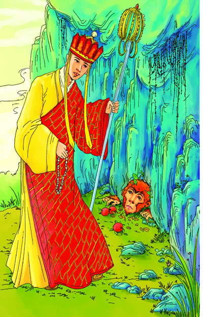 如来派观音菩萨去东土寻一取经人,去西天取经,劝化众生。观音点化 玄奘去西天求取真经。唐太宗认玄奘做御弟,赐号三藏。唐三藏西行,在五行山救出孙悟空。孙悟空被带上观世音的紧箍,唐僧一念紧箍咒,悟空就头疼难忍。师徒二人西行,在高老庄,收服猪悟能,猪八戒做了唐僧的第二个徒弟;在流沙河,又收服了沙悟净,沙和尚成了唐僧的第三个徒弟。师徒四人跋山涉水,西去求经。
