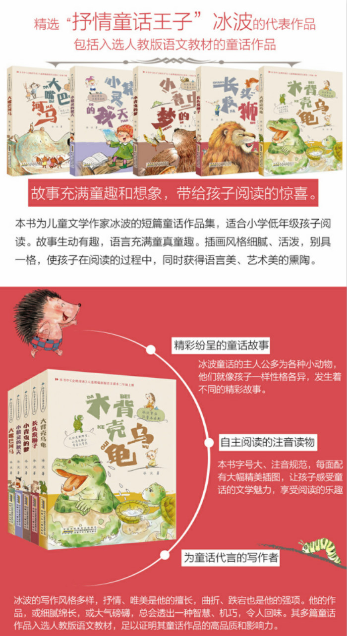 3、自主阅读的注音读物。本书字号大、注音规范,每面配有大幅精美插图,让孩子感受童话的文学魅力,享受阅读的乐趣。