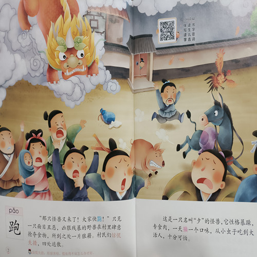 “那只怪兽又来了!大家快跑!”只见一只面目丑恶,凶狠残暴的野兽在村里肆意抢夺食物,所到之处一片狼藉。村民们惊慌失措,四处逃散。