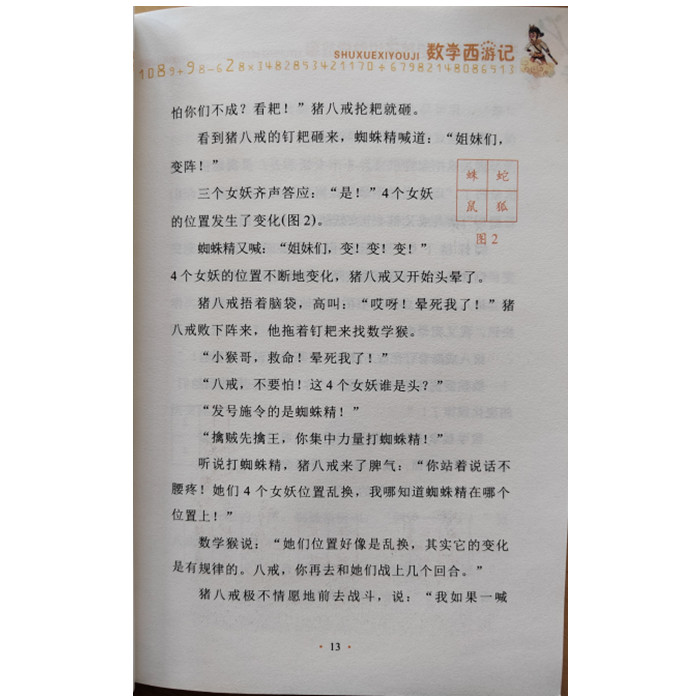 数学西游记”系列是作者借用小朋友耳熟能详的著名IP《西游记》,讲述了其中一些主要人物跟数学有关的故事,包括《酷酷猴闯西游》《哪吒智斗红孩儿》和《猪八戒新传》3本。书中涉及的数学知识主要与小学低年级水平相对应,并针对小学一二年级学生的数学知识掌握情况及思维能力水平,对故事中涉及的数学知识点进行归纳总结,以及拓展延伸。