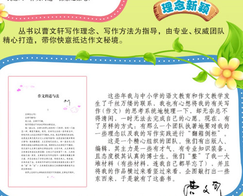 《曹文轩讲作文》融合曹文轩作文观点和写作方式,在趣味和实用的原则下,带领学生找到写好状物类作文的门道。全书集名家技法指导、名家美文示范、同龄人佳作展示、写作素材积累于一体,细分条目,内容安排紧凑、精当,栏目设计科学新颖,选文、指导文质兼美,极富曹文轩轻松唯美的风格,能让学作文真正变成一种心灵享受。