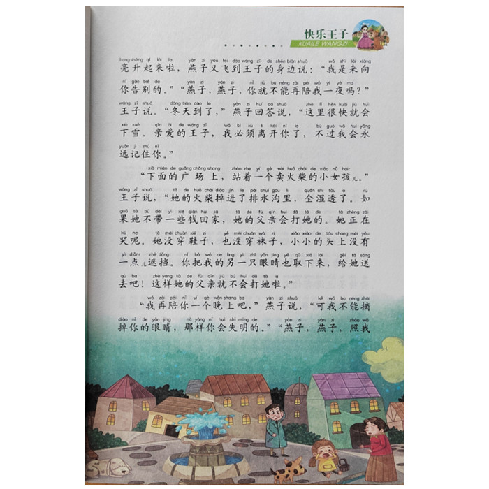 城市中心的石柱上矗立着快乐王子的雕像。雕像浑身都镶着黄金叶片,眼睛是用蓝宝石做的,是这座城市的标志性建筑。快乐王子俯瞰着城市,看到人世间的丑恶和贫苦,他忍不住哭了。在同样善良的小燕子的帮助下,他把身上所有值钱的东西都送给了穷人,*后变得黯淡无光,被城市所遗弃。而他这种为了他人的幸福牺牲自己的精神,却留在了人们的心中。本书中还收录了王尔德另外几篇童话,包括《自私的巨人》《忠实的朋友》《夜莺与玫瑰》《星孩》《少年国王》《西班牙公主的生日》《渔夫和他的灵魂》等,都是语言华美、情节生动又富有哲理的佳作。