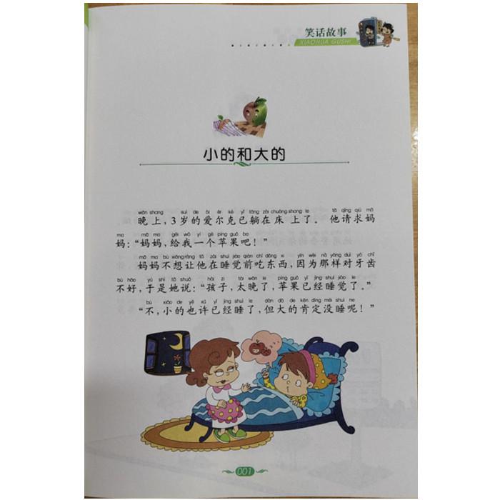 《笑话故事》精选经典幽默故事,以及新的流行笑话。所选笑话既有搞笑的、幽默的,也有耐人寻味,会心一笑的,在孩子在读故事、开心一笑的同时,领略故事中蕴含的道理。希望通过故事,通过简单、生动的语言、饶有趣味的文字,为孩子打开快乐的大门。笑话,不仅具有讽刺性和娱乐性,而且对人生有着与众不同的启迪意义。读笑话故事的过程,也是一个在欢乐中学习知识、有所感悟的过程。