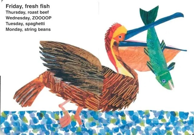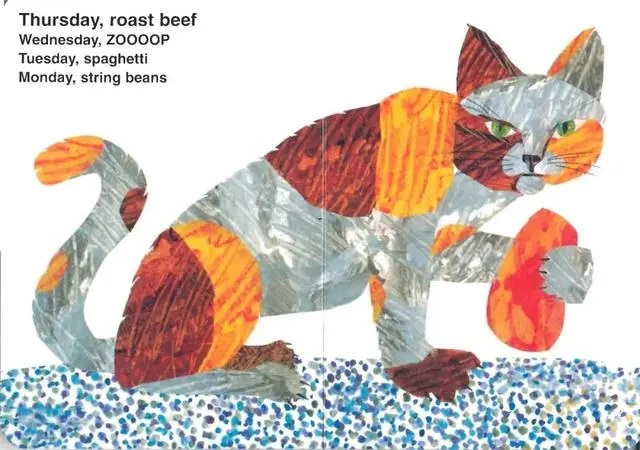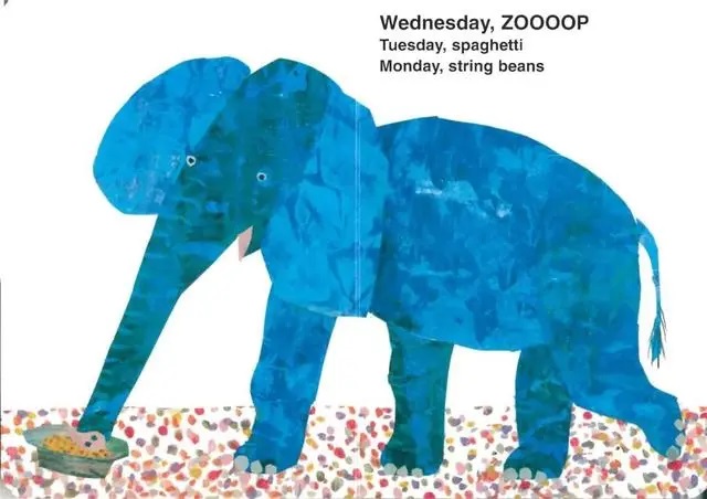 《Today is Monday》这个绘本的创作是基于一首广为传唱的英文儿童歌曲。 翻开书页小朋友就会跟随着不同的动物来一场食物大游行,从Monday一口气吃到Sunday,星期一和豪猪一起享用美味翠绿的豆子,星期二和花花蛇一起吃滑溜溜的意大利面,星期三和蓝色大象来喝神秘的Zooooop!还有还有~还有牛肉,鱼,鸡肉。