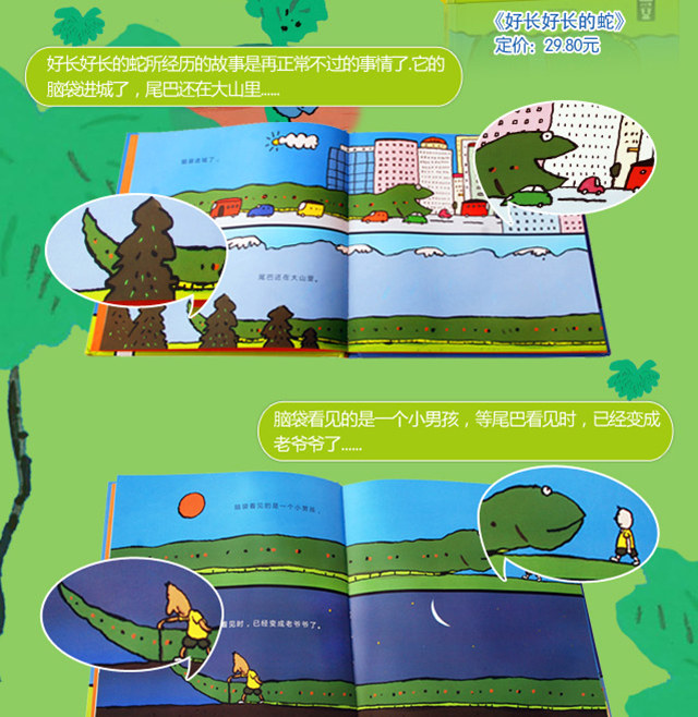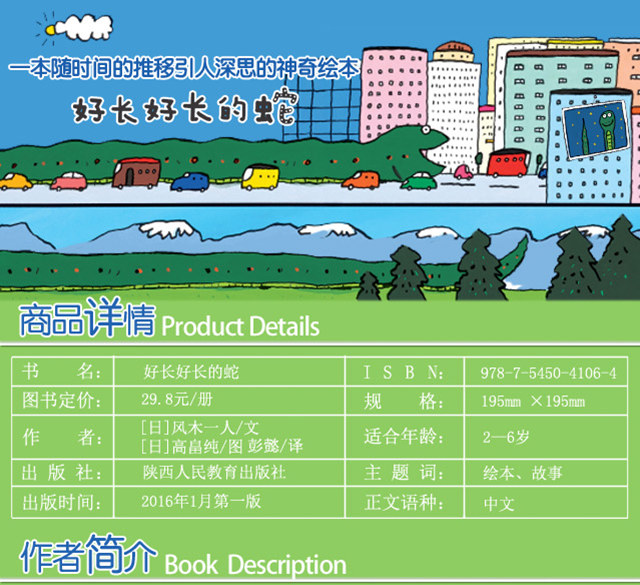小时候,这是一本绘本书;长大后,这是一本哲理书。一本讲述孩子关于成长的话题的绘本。孩子是天生的修辞家,在他们感知的世界里,好长好长的蛇所经历的故事是再正常不过的事情了。就像孩子的愿望那般,可以天马行空,没有任何限制。 可是,孩子始终会长大,他们也必然会经历与脑袋和尾巴相似的困惑,并感同身受。这些困惑,就是长大以后的失落,童年时期的修辞不再有,取而代之的是成年之后的现实。能够坦然面对和接受这种变化和落差,用愿望装饰遗失的一切,也许就是所谓的成长吧。