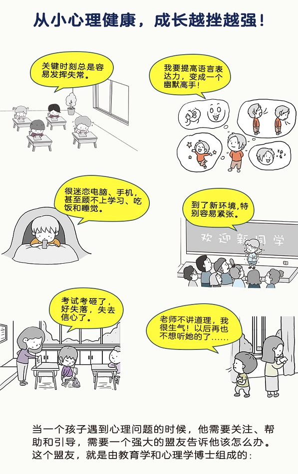 《小学生心理学漫画》系列专门针对6-12岁的小学生,分别从社交力、自信力、积极力、情绪自控力、自助力、幽默力6个方面,帮助这个年龄段的孩子打好心理健康基础。全书共235个涉及生活和学校的情景,对应孩子生活中普遍存在的心理环境,帮助孩子建立积极价值观,越挫越强。
