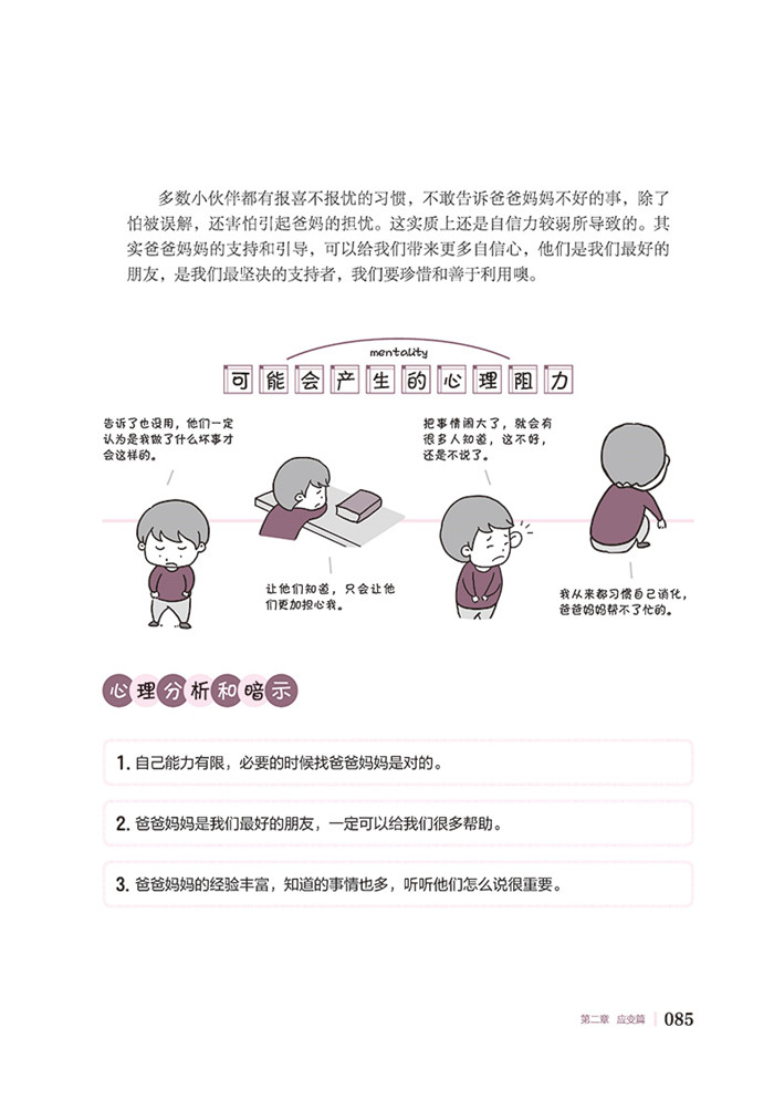 每篇均有有趣的漫画图解和专业心理团队点评,令本书不仅简单好看,也具备专业深度。可以亲子共读,既帮助孩子理解心理知识,也方便家长更了解孩子的内心世界。