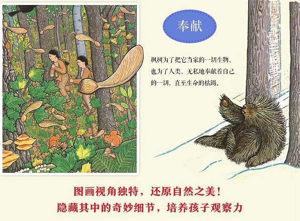 本书适合于学前及小学低年级儿童阅读的科普绘本。细腻生动的插画与宏大的场景引人入胜。故事以一株枫树二百一十二年的生命历程为主线,讲述了不同时期出现在枫树周围的动物的特征、习性,以及人类的介入和季候等原因导致环境的改变。小读者通过了解树的生长故事,了解更多关于自然的科学知识,并对生命的循环往复有所感悟。其艺术价值与教育价值将对小读者有深远的影响。