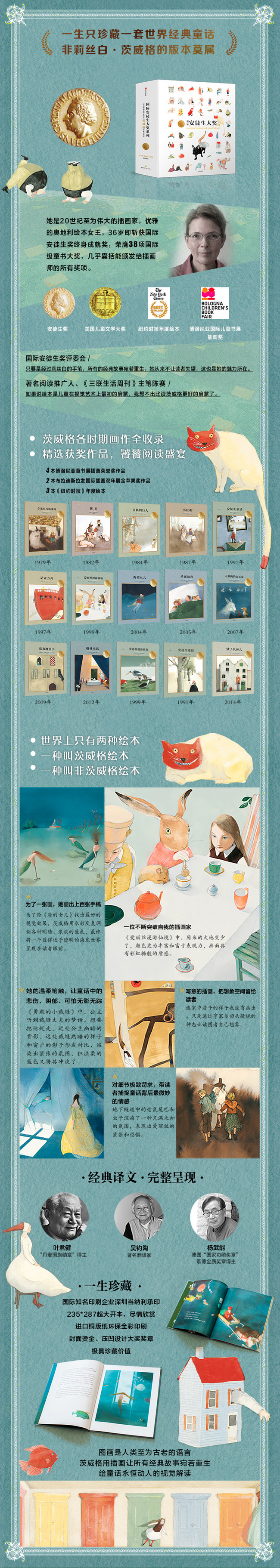 她是本世纪至为伟大的插画家、优雅的奥地利绘本女王,36岁即斩获国际安徒生奖终身成就奖荣膺38项国际级童书大奖,几乎囊括能颁发给插画师的所有奖项。国际安徒生奖评委会评价道:只要是经过她的手笔,所有的经典故事宛若重生,她从来不让读者失望,这也是她的魅力所在。