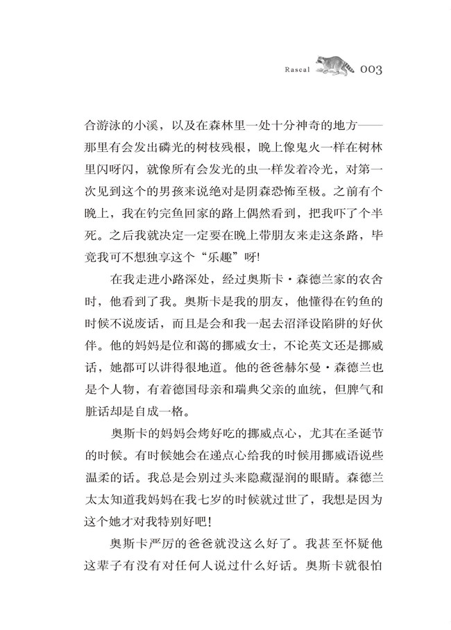 你有最好的动物朋友吗?“臭鼬、土拨鼠、乌鸦,一位心不在焉的爸爸,一艘还没造完的独木舟……”欢迎你走进斯特林?诺斯的家。十一岁的男孩斯特林的新宠物是从森林里发现的一只浣熊宝宝。之后的一年里,浣熊小淘气和斯特林成了最好的朋友。他们一起游泳、钓鱼、冒险,共患难同快乐。然而当春天再次来临时,小淘气却离开斯特林走向森林……这是作者关于自己童年最爱的宠物的真实传记,幽默真切地流露出对动物与自然的深爱;因背景是一战末期的美国乡村,又深具历史和社会意义。