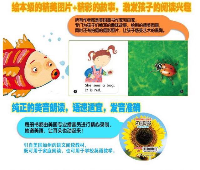 精心设计的分级难度,从零起点开始,逐步培养孩子的阅读能力。每级在词汇引入方面的严格控制,单词只有一两个音节,一个基本句型,每句不