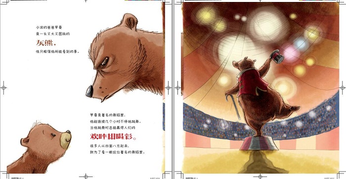 ★小熊一直期盼能够走出杂技团的那个小笼子,当他爬上屋顶的时候才发现,稚嫩的自己还不能够抵抗外面的风雨,而爸爸的怀抱成立他*想去的地方。读后让人感动泪目。