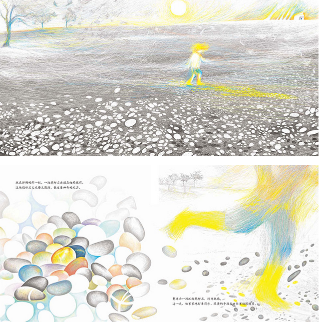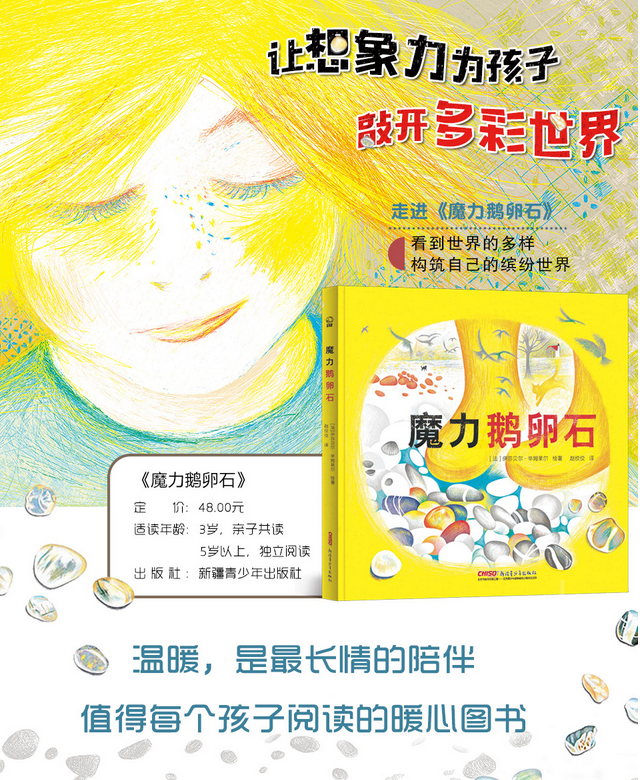 4. 蕴含着美好的象征。有了魔力鹅卵石,费迪南即使膝盖淤青,仍然能够快乐地继续寻找石头。作者关心费迪南,发现费迪南丰富的想象力,带我们看到费迪南多彩的内心世界,作者又何尝不是一颗魔力鹅卵石呢?