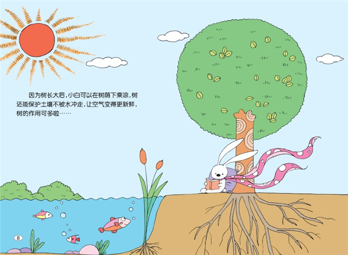 3.主人公兔子小白造型天真可爱,画风清新明亮,故事内容贴近孩子生活。