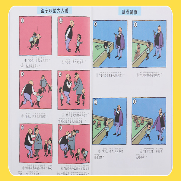 一幅幅小而精湛的画面里跳跃着的是智慧的光芒,简单线条里流淌出的是纯真的父子之情与融融天伦之乐。