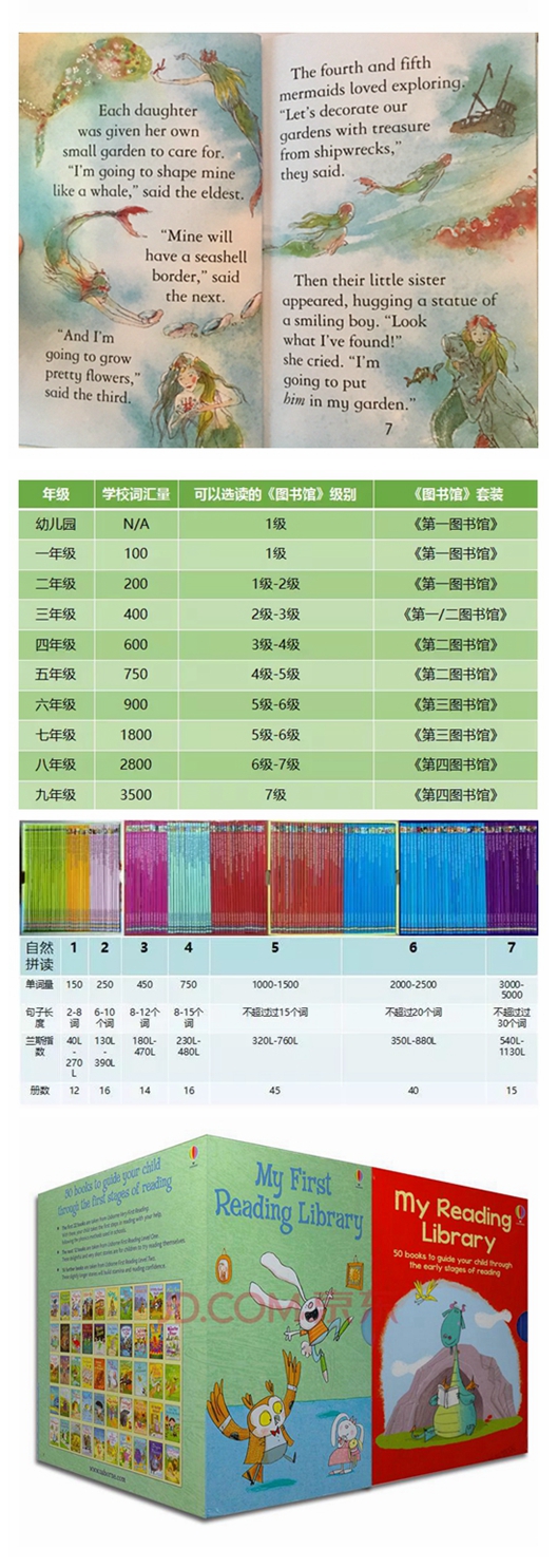 USBORNE图书馆系列到LEVEL5之后,词汇量增加到1000-1500,每页的文字数量在十行左右,共48页,涵盖了英文大部分的语态和时态。从这个级别开始,由图画书逐渐过渡到章节阅读。适合小学五六年级和初中生作为词汇量扩展读本。Level5系列均为世界知名的民间故事和童话故事,学生一般都已接触过中文版本。