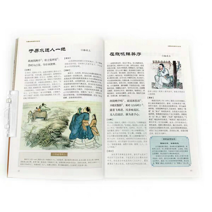 - 中国诗歌文学的瑰宝 名社佳作,千年传承 中国传统文学的源泉,中华文明的瑰宝 鲁迅:我以为一切好诗,到唐已被做完。 本版《唐诗三百首》在古本基础上,参考近现代所出版的其他版本,共选入唐代诗人七十七位,共计三百二十一首诗,其中五言古诗三十五首,乐府四十五首,七言古诗二十八首,五言律诗八十首,七言律诗五十三首,五言绝句二十九首,七言绝句五十一首,诸诗配有注释。作者均加以小传,介绍其生平事迹、主要成就及词作风格与特色。