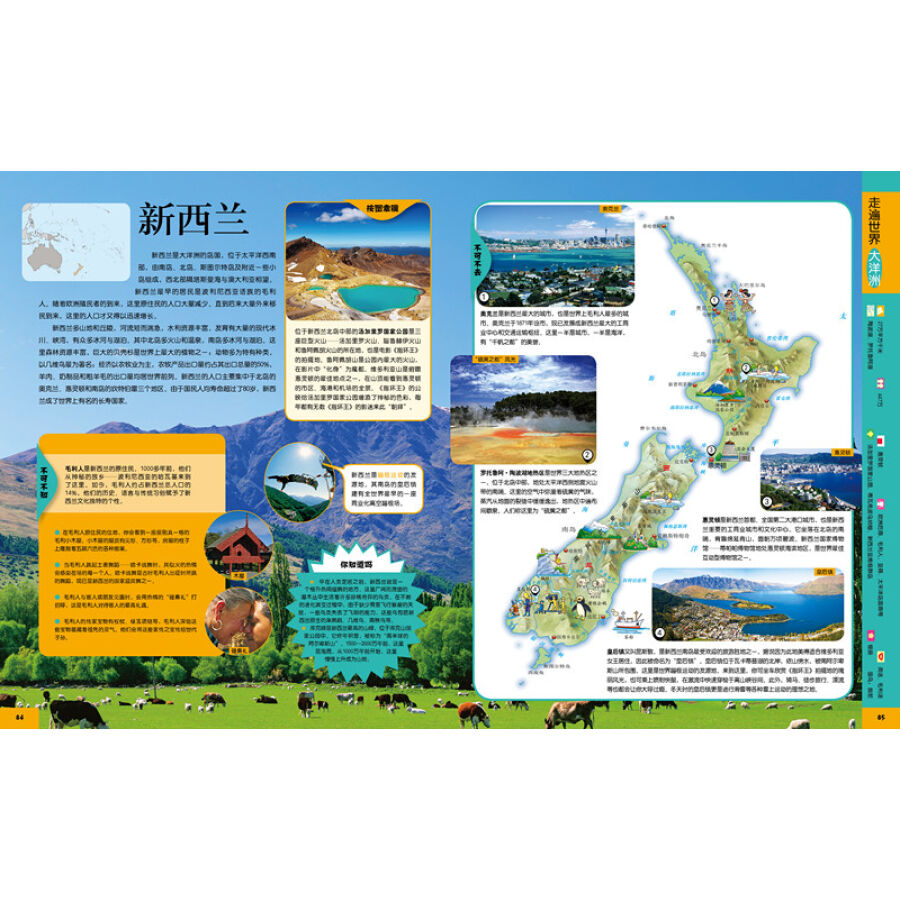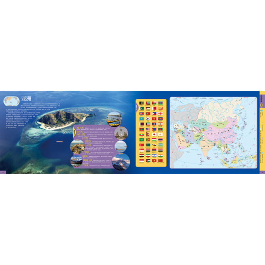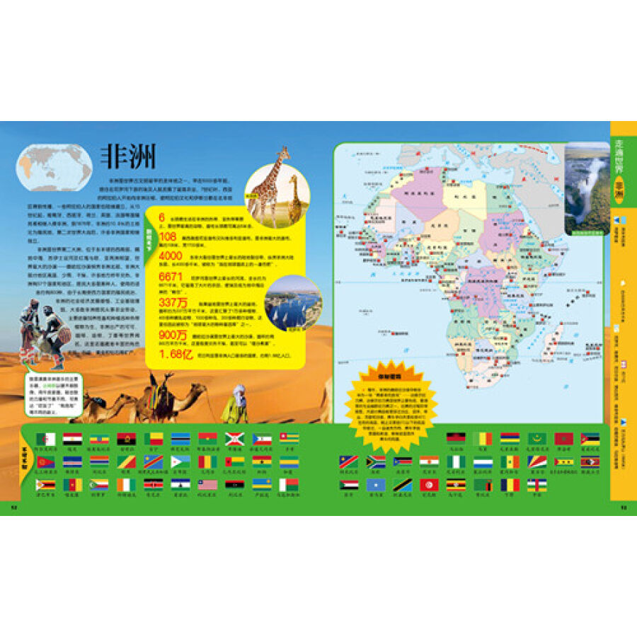 《中国儿童地图百科全书·走遍世界》联合中国科学院专家,从中小学阶段必学的地理知识里甄选精华,为好奇和渴求知识的孩子们展示了世界的包罗万象和五光十色。翻开《中国儿童地图百科全书·走遍世界》,你将会展开一场妙趣横生的纸上探险!这本书不仅通过一幅幅清晰易懂的主题地图和实拍图片,让你尽情享受在纸上发现世界七大洲和许多地区、国家的各种自然景观、人文古迹、当地特产、民族风情、世界遗产、自然保护区的乐趣,也精心设置了许多好看、好玩、好记的趣味版块:你可以在“不可不知”里知道世界上最小的国家是哪个,可以在“不可不去”一窥圣诞老人的家乡,可以通过“你知道吗”了解百慕大三角的神秘恐怖,可以经由“按图索骥”里看到世界唯一一个横跨欧亚两大洲的城市长什么样,可以通过“最数字”里的简单数字轻松记住地理知识,可以在“谁在说”里听来自各个地方的朋友讲述家乡的美丽和故事,还可以通过长达92厘米、精美震撼的全彩折叠拉页饱览大美景观!