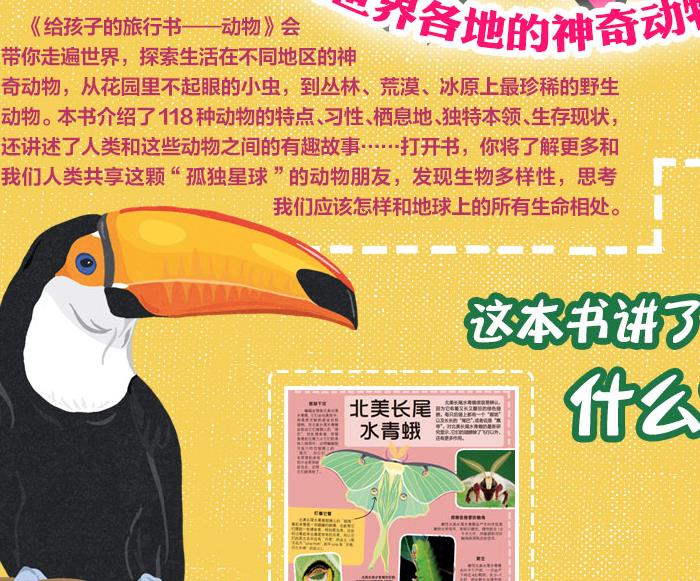 本书以世界各大地理区域中有代表性的动物为主人公,在介绍动物特点和各种细节的同时,着重阐述人与动物的关系,动物与自然的关系。传递保护动物和地球的意识及方法。体现了孤独星球品牌让读者了解世界多样性和生态、环保的品牌价值。
