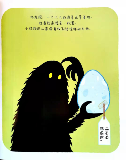 小怪物在家门口发现了一枚蛋。他是该喂喂它呢,还是带它散散步?幸运的是,约克医生给了他一些帮助,不过她忘了说一件非常重要的事:等蛋孵出来的那一刻,有一个大大的惊喜在等着他!