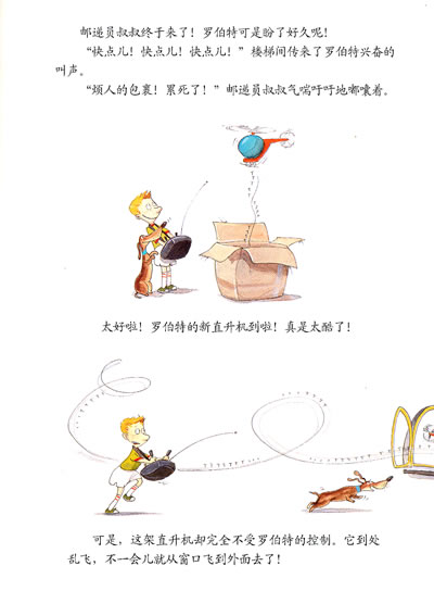 罗伯特得到了一架新的直升机,而且还是遥控的呢!可惜呀,那架直升机根本不受罗伯控制。