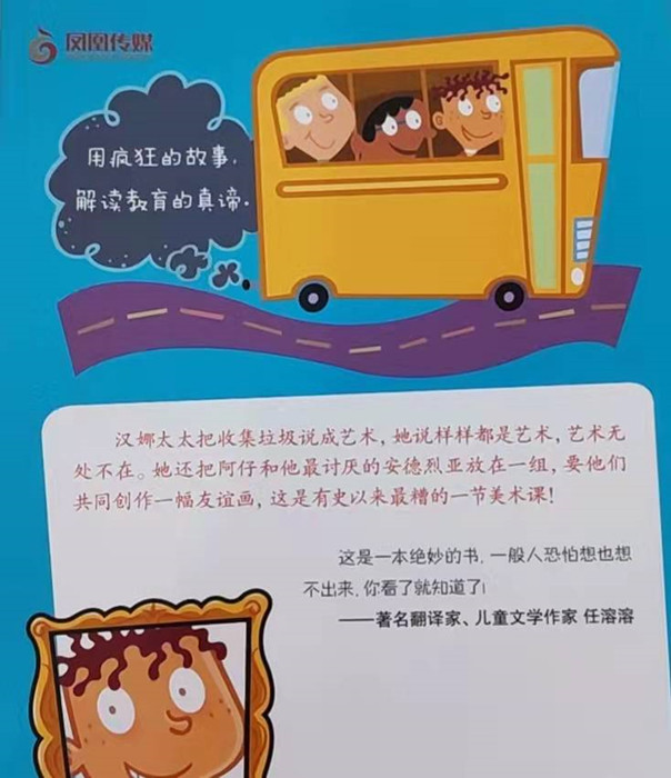 汉娜太太把收集垃圾说成艺术,她说样样都艺术,艺术无处不在。她还把阿仔和那个讨厌的安德烈亚放在一组,要他们共同创作一幅友谊画,这是有史以来最糟的一节美术课!什么时候我的老师也和书中的一样,那上学该是件多么好玩的事呀!