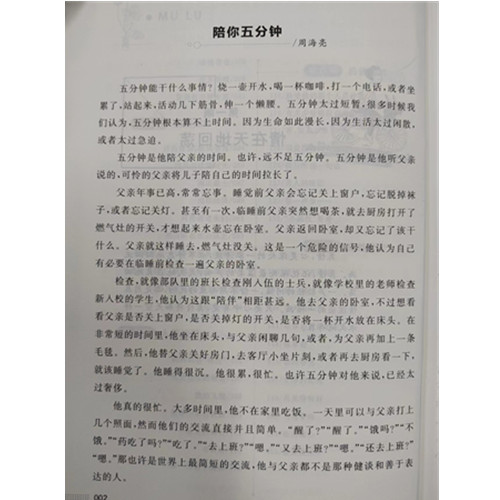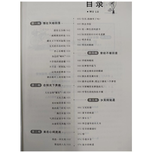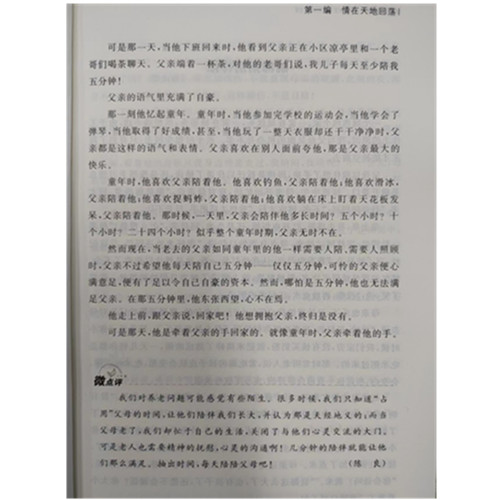 1、时文读写范本 选文内容围绕中学生学习、生活、思想情感等方面,贴近日常生活情境,极具可读性;本次甄选增补了与近三年来社会热点话题相关的数百篇文章,把握时代脉搏,更具时效性。 2、体裁丰富,文质谦美 选文包含散文、时评、杂文、随笔、议论文、记叙文等文体,兼具文学性与实用性,帮助中学生进一步理解社会生活和情感世界,探索其中蕴涵的民族心理和人文精神。 3、主题多元,意境深远 选正能量美文,理性睿智,平实温厚,针砭时弊,主题丰富多元,意境深远且构思新巧,有利于培养中学生的思辨性。 4、篇幅适中,结构完整 选文篇幅适中,千字文标准,语言通顺,结构完整,既能丰富中学生的阅读量,也为其提供了考场作文的仿写范本。 5、普世价值,理性客观 选文尊重人类普世价值,积极向上,以相对理性客观的角度看待社会与人生,正向引导中学生坚守社会责任和公民意识,充满正能量。